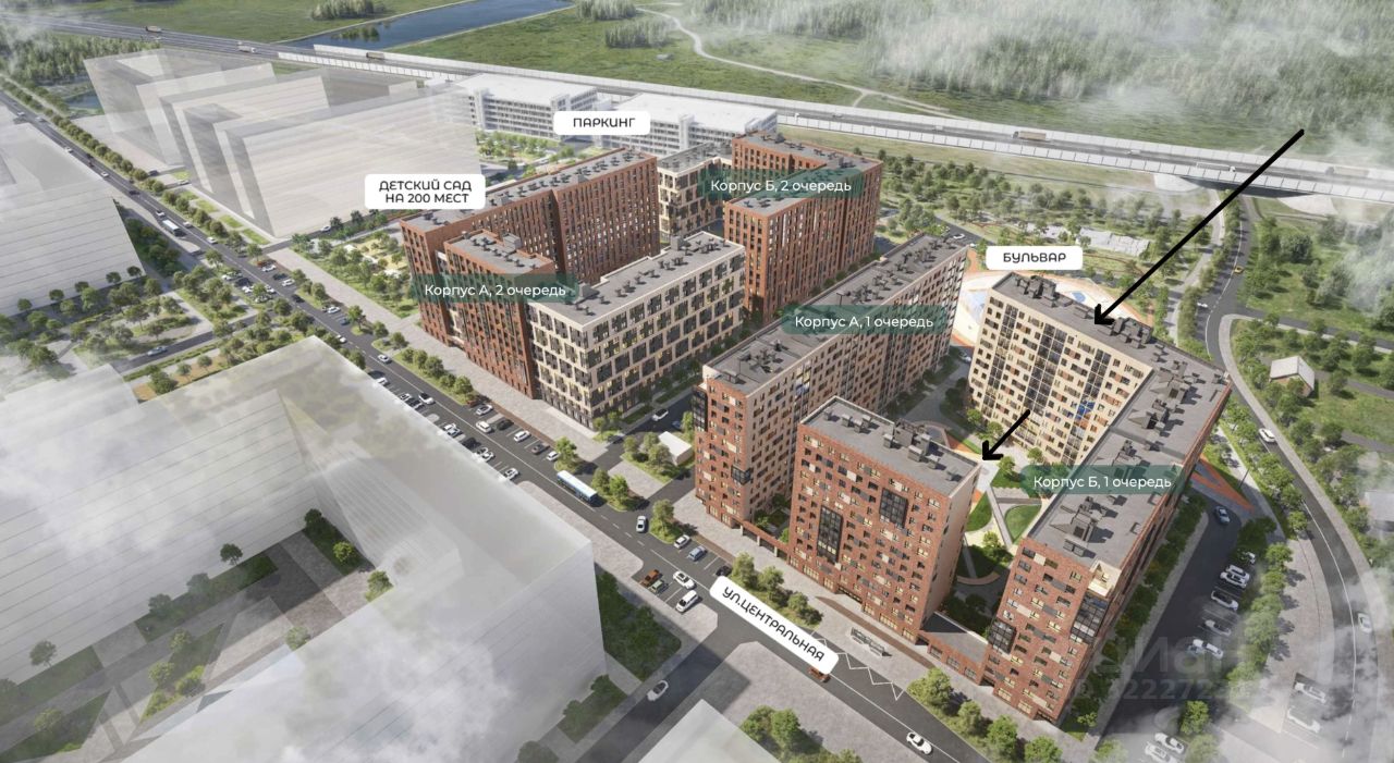 Окна выходят на две стороны (Отметил стрелками окна квартиры и корпус)