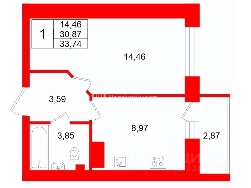 В квартире новым хозяевам в подарок остается современная кухня со встроенной техникой (варочная поверхность, духовой шкаф и вытяжка).