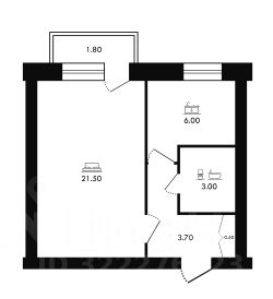 Просторная планировка - жилая комната 21,5 кв.м., в которой с комфортом разместились и спальные места, и рабочее пространство, и места для хранения. Здесь же имеется выход на остекленный балкон.
