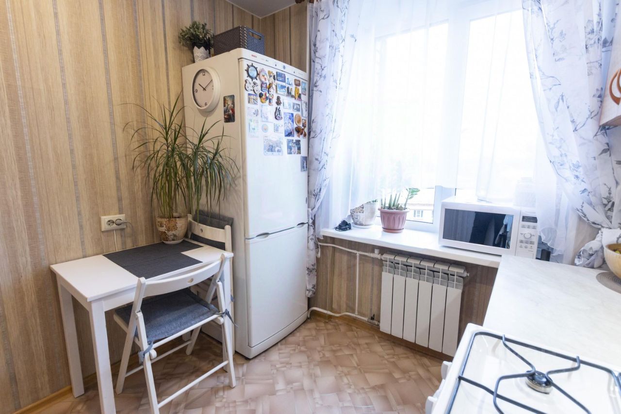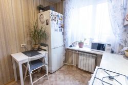 Кухня компактная, однако вмещает всю необходимую мебель и технику - холодильник, микроволновая печь, газовая плита с духовкой для приготовления вкусной еды и обеденный стол. Также имеется фильтр для питьевой воды.