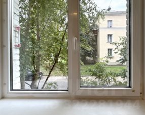 Большие окна выходят на две стороны — на тихий двор и на улицу.