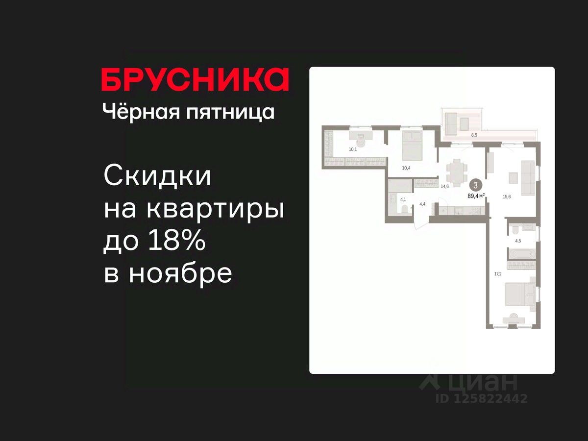 Продается 2-комн. квартира с предчистовой отделкой в ЖК "Брусника в Новоселье" на 9 этаже. Общая площадь: 89.39 кв.м. Высота потолков 2.7 м.