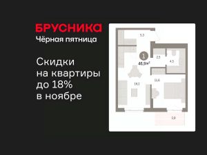 Просторная 2-комн. квартира с европланировкой и предчистовой отделкой в ЖК "Брусника в Новоселье" на 7 этаже. Общая площадь: 46.87 кв.м., жилая: 20.8 кв.м., общая площадь гостиной-столовой с кухонной зоной: 19.2 кв.м. Европланировка, за счет большой площади кухни-гостиной квартира выглядит просторной и очень удобна для жизни. Комнаты изолированные, все окна выходят на одну сторону. В квартире один балкон, один совмещенный санузел. Высота потолков 2.7 м.