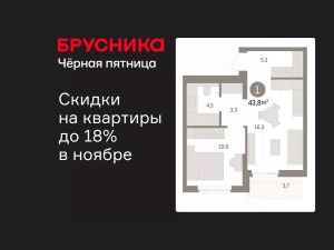 2-комн. квартира с предчистовой отделкой в ЖК "Брусника в Новоселье" на 8 этаже. Общая площадь: 43.78 кв.м. Высота потолков 2.7 м.