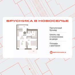 2-комн. квартира с предчистовой отделкой в ЖК "Брусника в Новоселье" на 6 этаже. Общая площадь: 46.87 кв.м. Высота потолков 2.7 м.