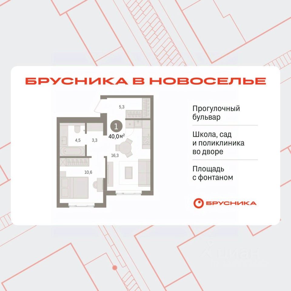 Продается однокомнатная квартира с предчистовой отделкой в ЖК "Брусника в Новоселье" на 2 этаже. Общая площадь: 40.04 кв.м., жилая: 10.6 кв.м., площадь просторной кухни-столовой: 16.3 кв.м. Все окна выходят на одну сторону. В квартире один совмещенный санузел. Высота потолков 2.7 м.