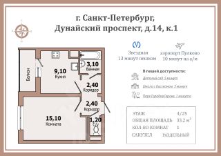 Удобный выезд на Пулковское шоссе, Московское шоссе, Московский проспект, Дунайский проспект, КАД и ЗСД.