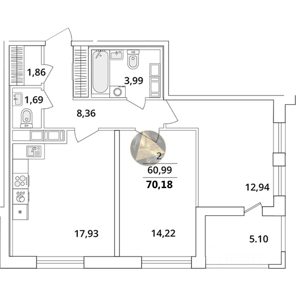 - Общая площадь квартиры 70.18 м2