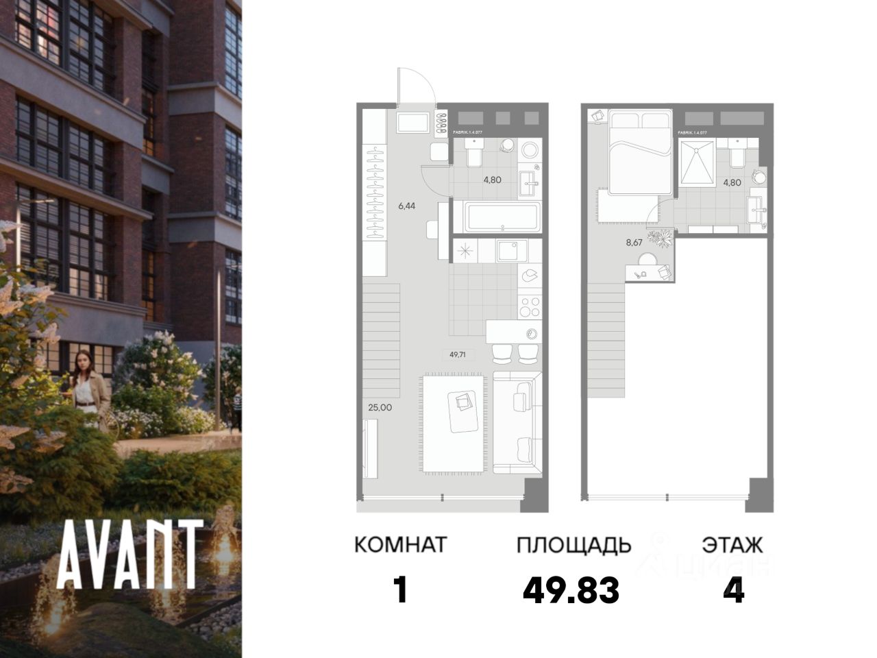 В историческом центре с особой атмосферой Петроградской стороны представлены 1-комнатные апартаменты на 4 этаже общей площадью 49.83 кв.м.