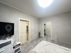 Продуманная система хранения включает гардеробную зону и два встроенных шкафа, что позволяет избежать загромождения интерьера лишней мебелью.