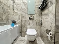 Просторная ванная комната также оснащена подогревом пола.