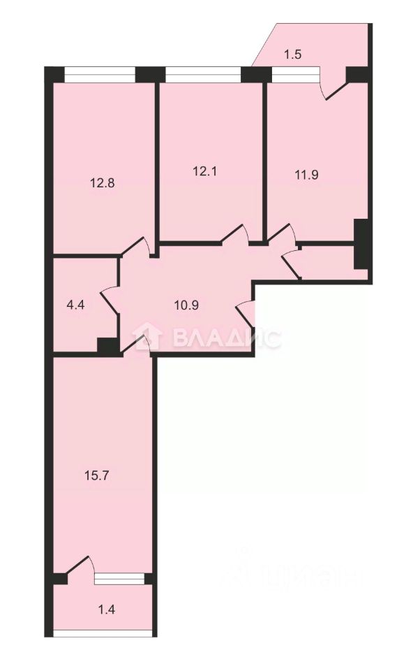 Три изолированные комнаты (15,7 / 12,8 / 12,1 м²) — у родителей и детей будет своё личное пространство, где можно отдыхать, играть и работать.