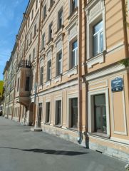 Кирпичный дом постройки конца XIX века в историческом центре Петербурга.