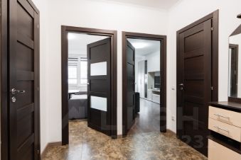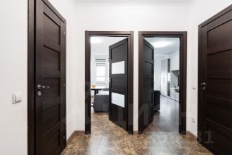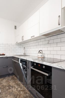 Обратите внимание на планировку квартиры: большой коридор правильной прямоугольной формы, кухня с мебелью и бытовой техникой высокого класса (посудомоечная машина, духовой шкаф, индукционная плита, вытяжка).