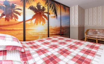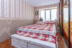 • Спальня 15,6 м² — с двуспальной кроватью и большим встроенным шкафом-купе 4,13 м в длину, делался на заказ (остаётся новым хозяевам).
