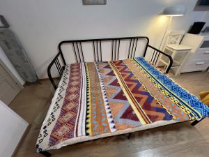 - 4 спальных места: двуспальная кровать и раскладывающаяся кушетка