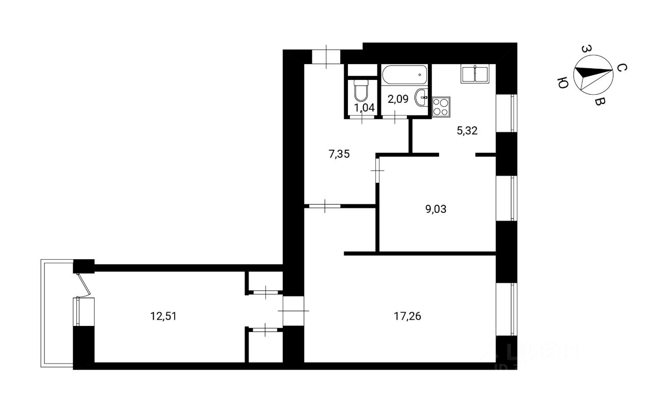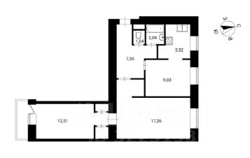 Окна выходят на 2 стороны: северо-запад и юго-восток