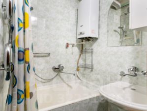 В доме есть газ. Горячая вода нагревается колонкой.