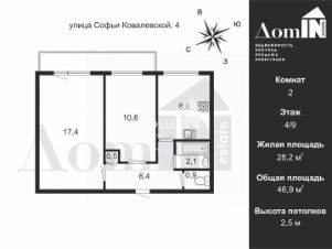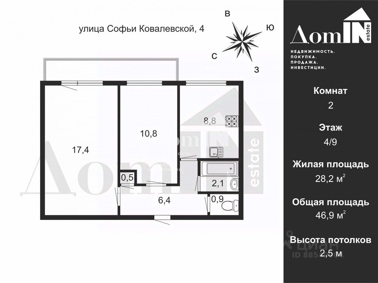 Арт. 118179521 Отличная 2-комнатная квартира в Калининском районе Санкт-Петербурга в шаговой доступности до м.Академическая.