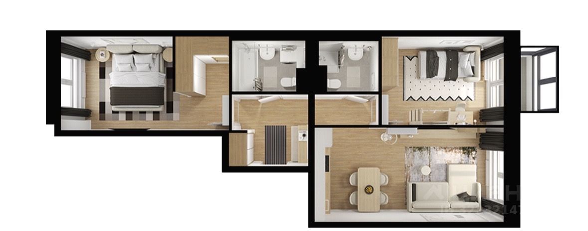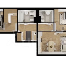 - Две изолированные комнаты, одна из них с гардеробной - 17,3, 12,5 кв.м