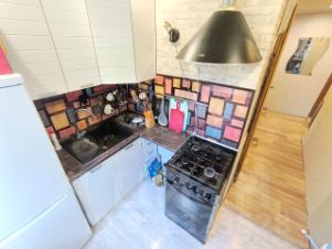 Встроенный кухонный гарнитур остаётся для новых владельцев квартиры.