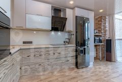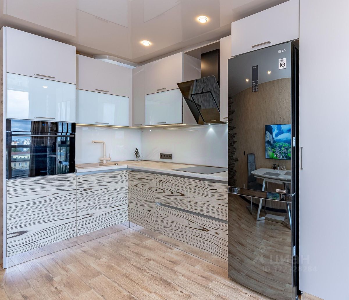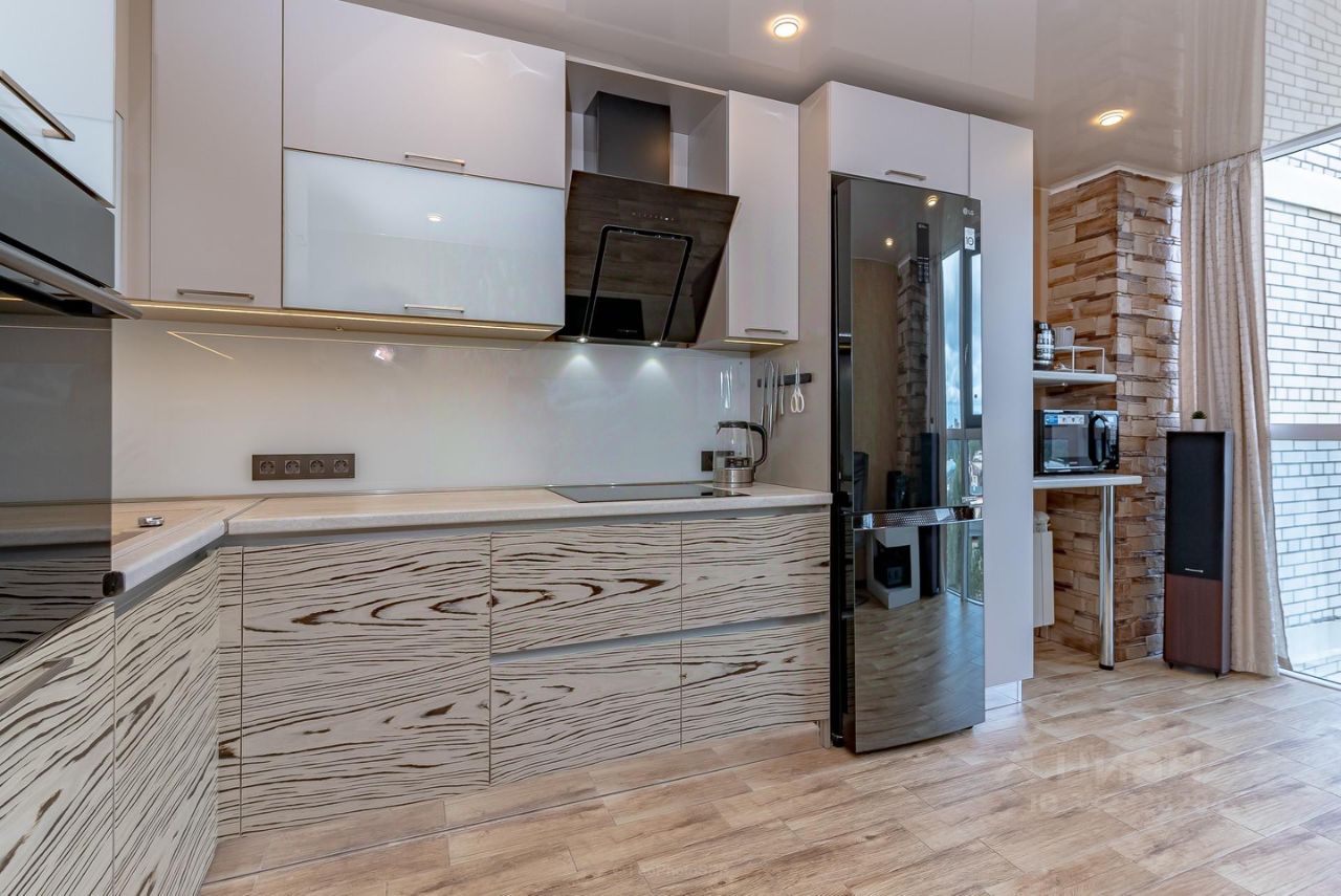 * Кухня 15м2 с кухонным гарнитуром с эффектом парения которая выглядит так, будто висит в воздухе.