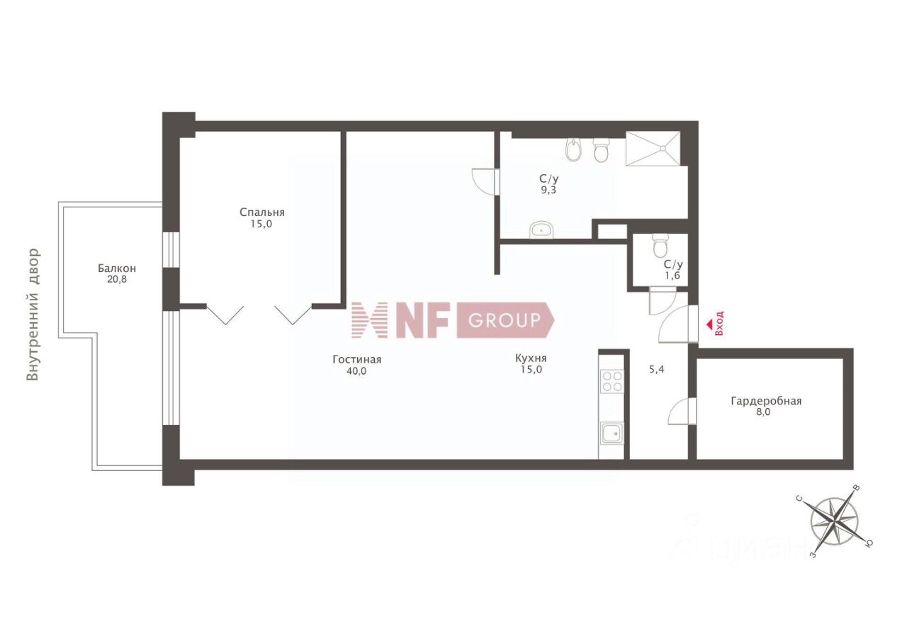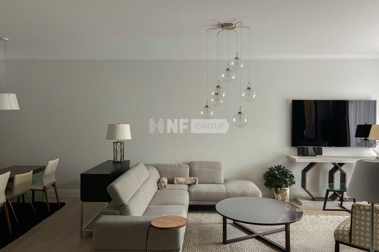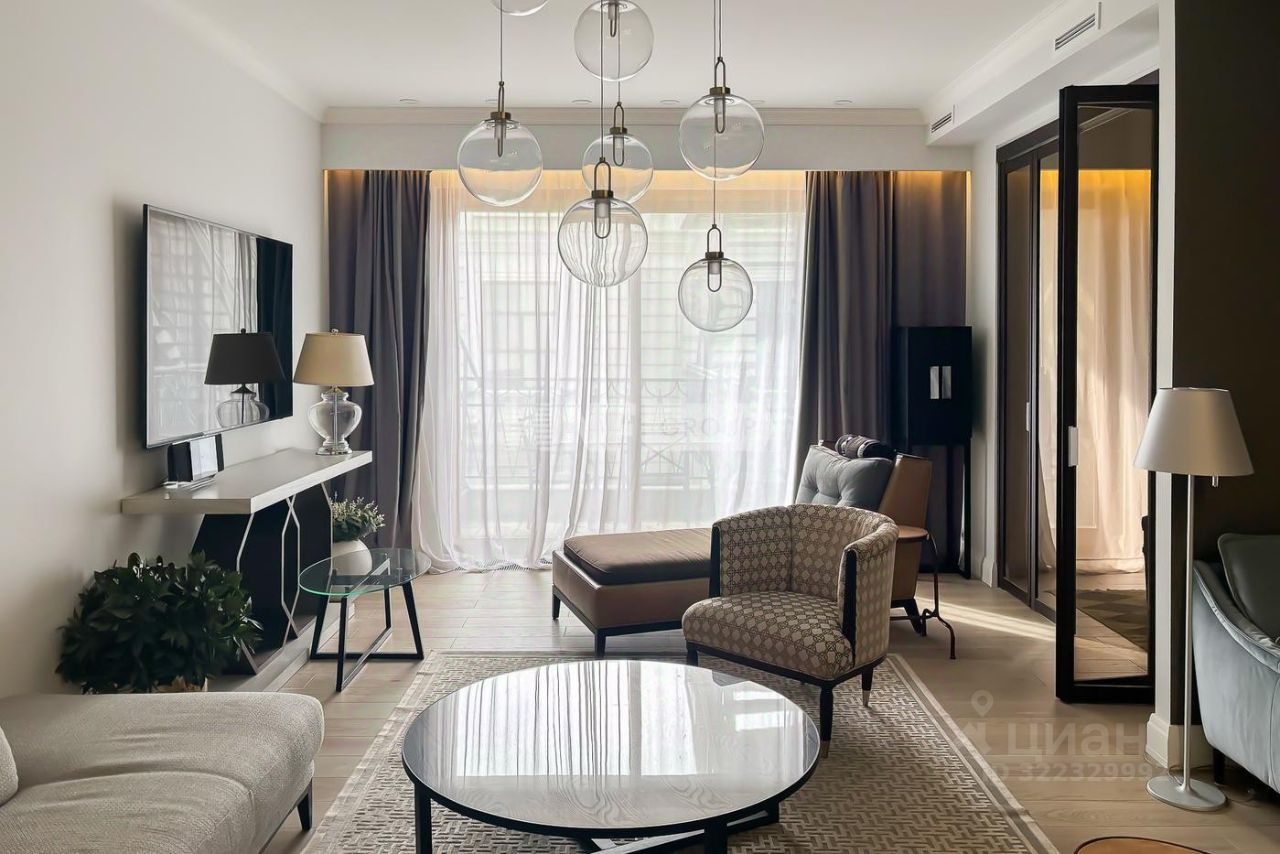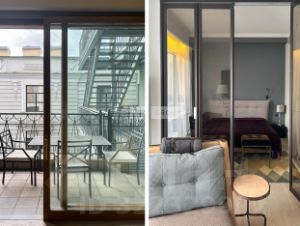 Пространство включает кухню-гостиную 55 м² с выходом на балкон, уютную спальню, вместительную гардеробную и санузел. Дизайн выдержан в элегантном стиле с использованием натуральных материалов и мебели. Окна выходят в тихий внутренний двор.