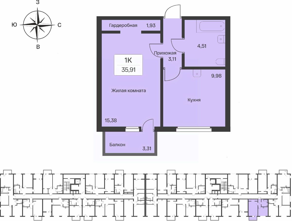 Продаётся 1-комнатная квартира в сданном доме (Корпус 4), срок сдачи: IV-кв. 2024, общей площадью 35.7 кв.м., на 6 этаже. Описание проекта:
