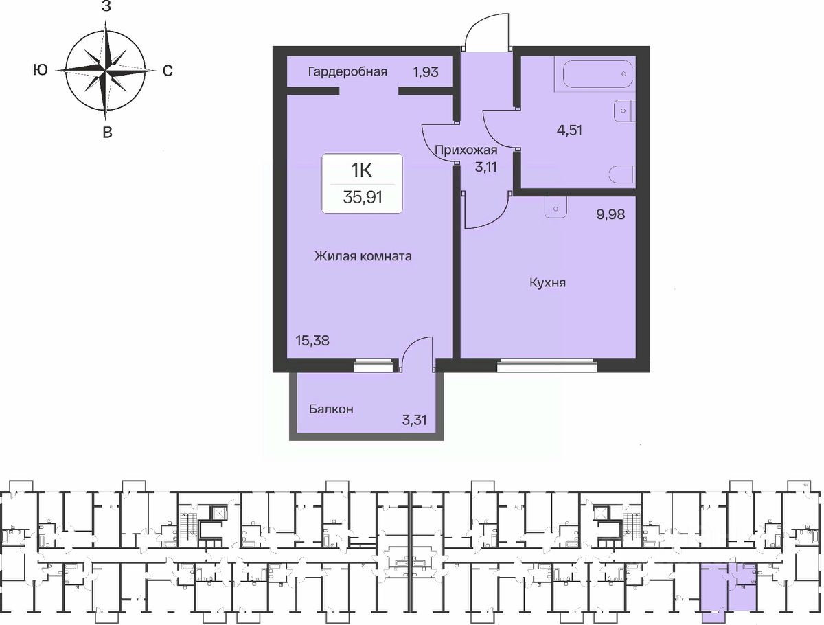 Продаётся 1-комнатная квартира в сданном доме (Корпус 4), срок сдачи: IV-кв. 2024, общей площадью 35.5 кв.м., на 11 этаже. Описание проекта: