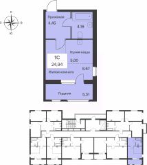 Продаётся студия в сданном доме (Корпус 4), срок сдачи: IV-кв. 2024, общей площадью 23.3 кв.м., на 12 этаже. Описание проекта: