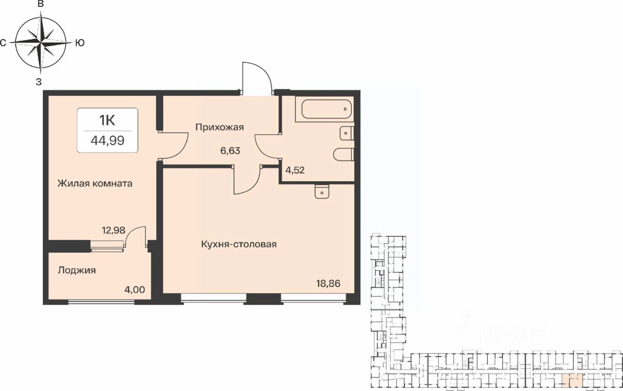 Продаётся 1-комнатная квартира в сданном доме (Корпус 3), срок сдачи: IV-кв. 2024, общей площадью 45 кв.м., на 9 этаже. Описание проекта: