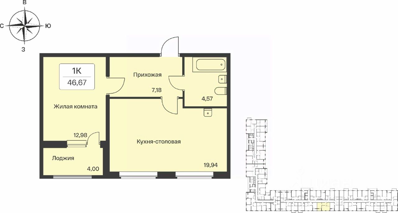 Продаётся 1-комнатная квартира в сданном доме (Корпус 3), срок сдачи: IV-кв. 2024, общей площадью 46.4 кв.м., на 10 этаже. Описание проекта: