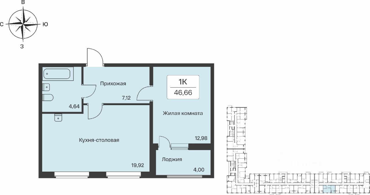 Продаётся 1-комнатная квартира в сданном доме (Корпус 3), срок сдачи: IV-кв. 2024, общей площадью 46.4 кв.м., на 10 этаже. Описание проекта: