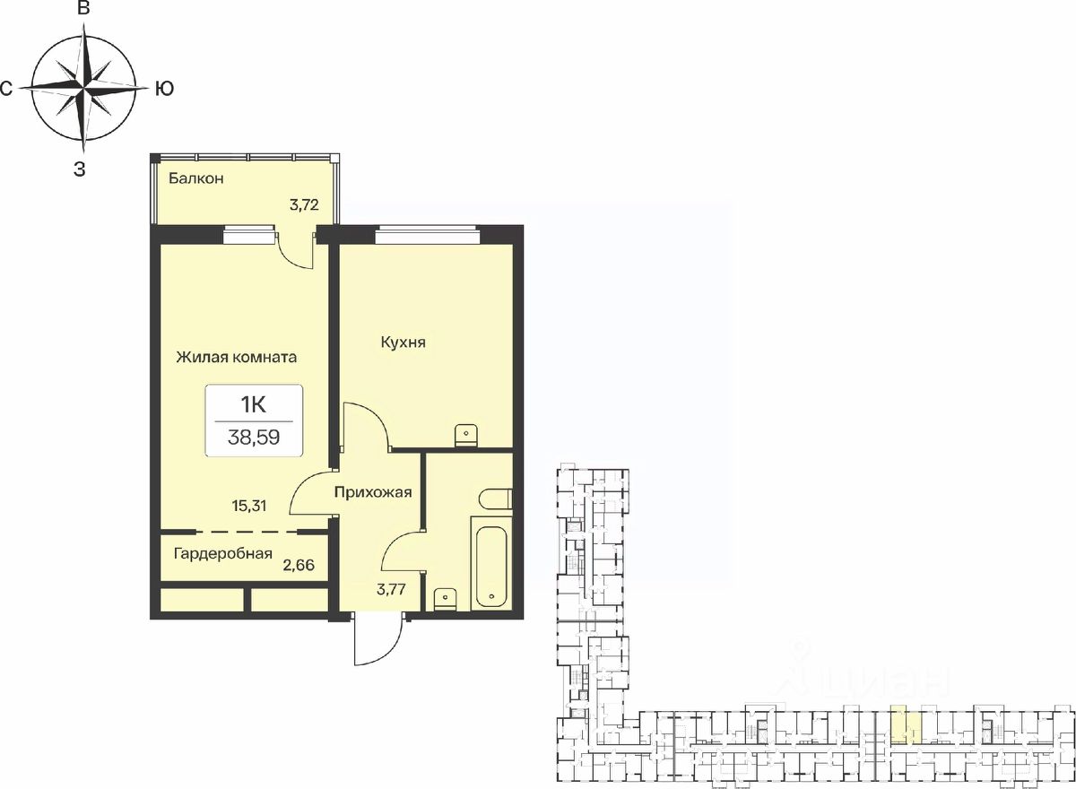 Продаётся 1-комнатная квартира в сданном доме (Корпус 3), срок сдачи: IV-кв. 2024, общей площадью 38.5 кв.м., на 11 этаже. Описание проекта:
