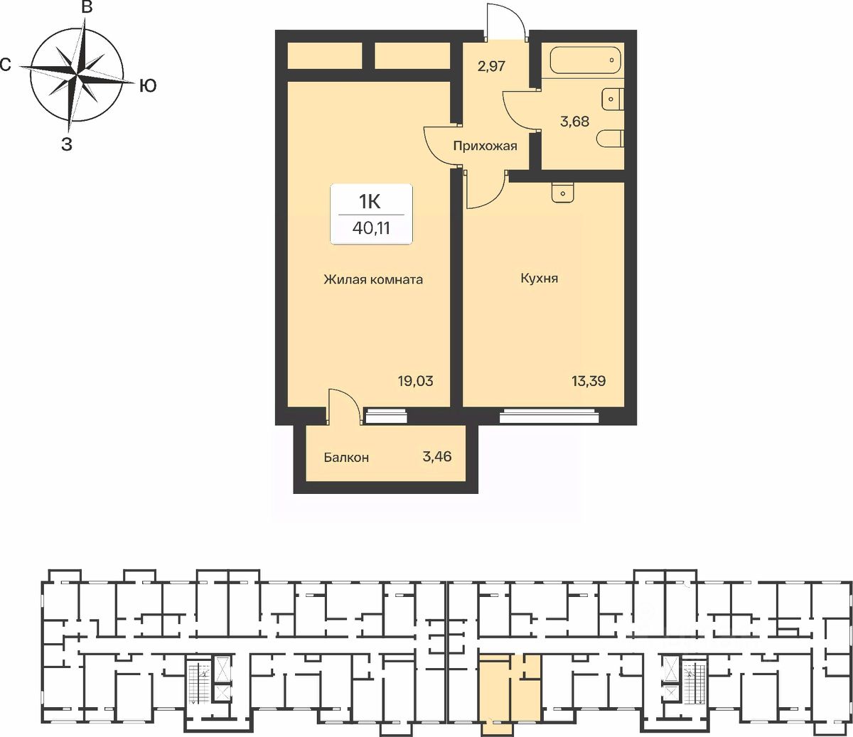 Продаётся 1-комнатная квартира в сданном доме (Корпус 2), срок сдачи: IV-кв. 2024, общей площадью 40.9 кв.м., на 9 этаже. Описание проекта:
