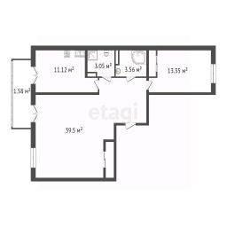 - Ванная комната: 3,56 м² с джакузи и раковиной