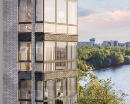 Для прогулок возле реки Охты благоустроят набережную. Для автомобилей предусмотрена парковка и подземный паркинг. Артикул 818617 (Застройщик АО СЗ "Ладожский") [cn_sbp_1812956]
