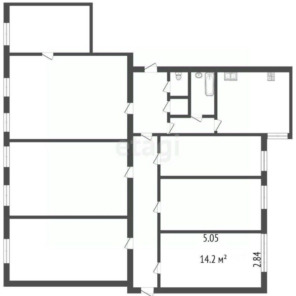 Просторная комната 14,2 м² с косметическим ремонтом (обновляли 4 года назад). Заменена электропроводка, установлены розетки и освещение.
