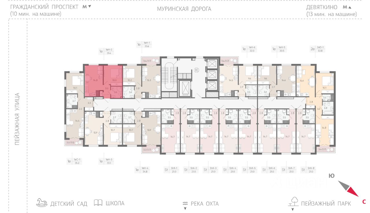 • 20 минут на авто до станций "Гражданский проспект" и "Академическая";