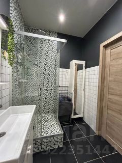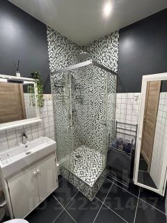 В санузле сделана душевая кабина по индивидуальному проекту с тропическим душем.