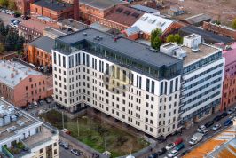 - На территории комплекса спроектировано торгово-офисное пространство с зонами коворкинга и выходом на крышу, а также концептуальный ресторан на 1 этаже.