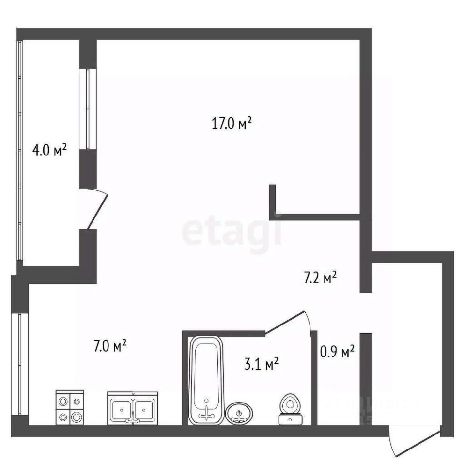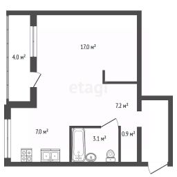 Светлая квартира площадью 35,4 м² расположена на 6 этаже 12-этажного панельного дома. Жилая комната — 17 м², кухня — 7 м², высокие потолки 2,5 м. Просторная лоджия с электричеством и видом на улицу.