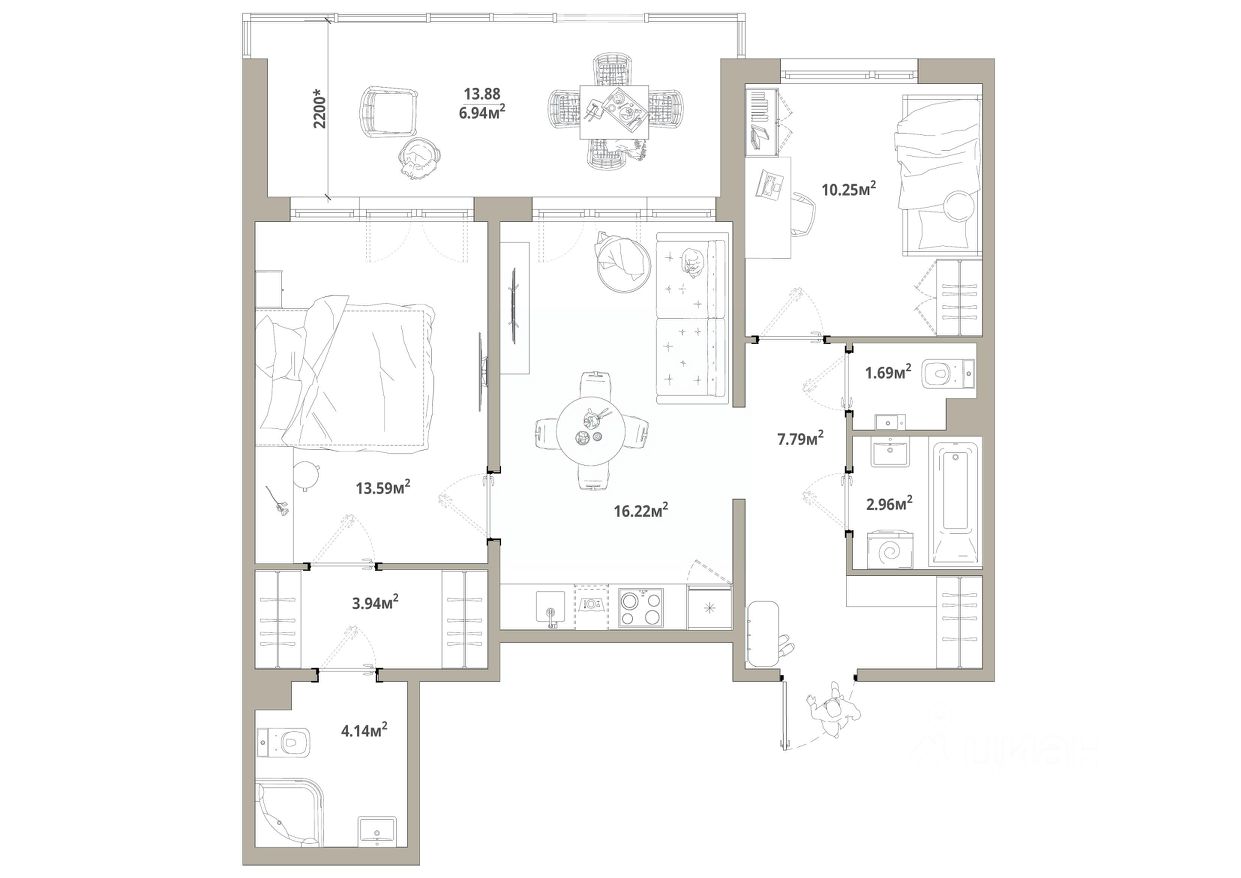 Продаётся 2-комнатная квартира 277, общей площадью 67.52 кв.м., на 11 этаже. Дом комфорт-класса, 12 этажей, в окружении леса и малоэтажной застройки. Проект с умным домом.