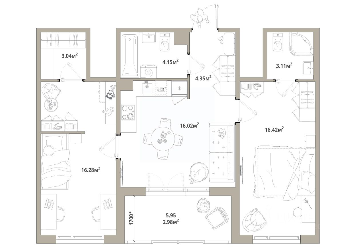 Продаётся 2-комнатная квартира 150, общей площадью 66.35 кв.м., на 9 этаже. Дом комфорт-класса, 12 этажей, в окружении леса и малоэтажной застройки. Проект с умным домом.