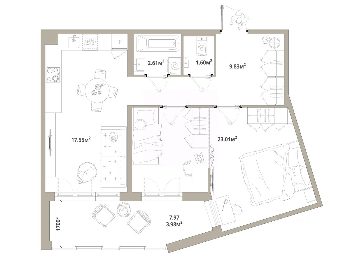 Продаётся 1-комнатная квартира 258, общей площадью 58.58 кв.м., на 9 этаже. Дом комфорт-класса, 12 этажей, в окружении леса и малоэтажной застройки. Проект с умным домом.