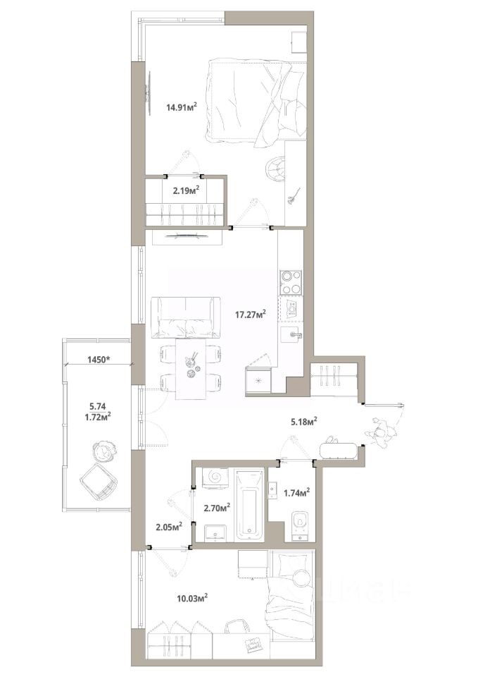 Продаётся 2-комнатная квартира 068, общей площадью 57.79 кв.м., на 10 этаже. Дом комфорт-класса, 12 этажей, в окружении леса и малоэтажной застройки. Проект с умным домом.