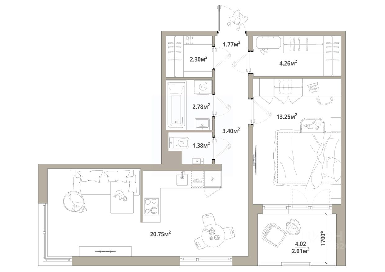 Продаётся 1-комнатная квартира 039, общей площадью 51.9 кв.м., на 6 этаже. Дом комфорт-класса, 12 этажей, в окружении леса и малоэтажной застройки. Проект с умным домом.
