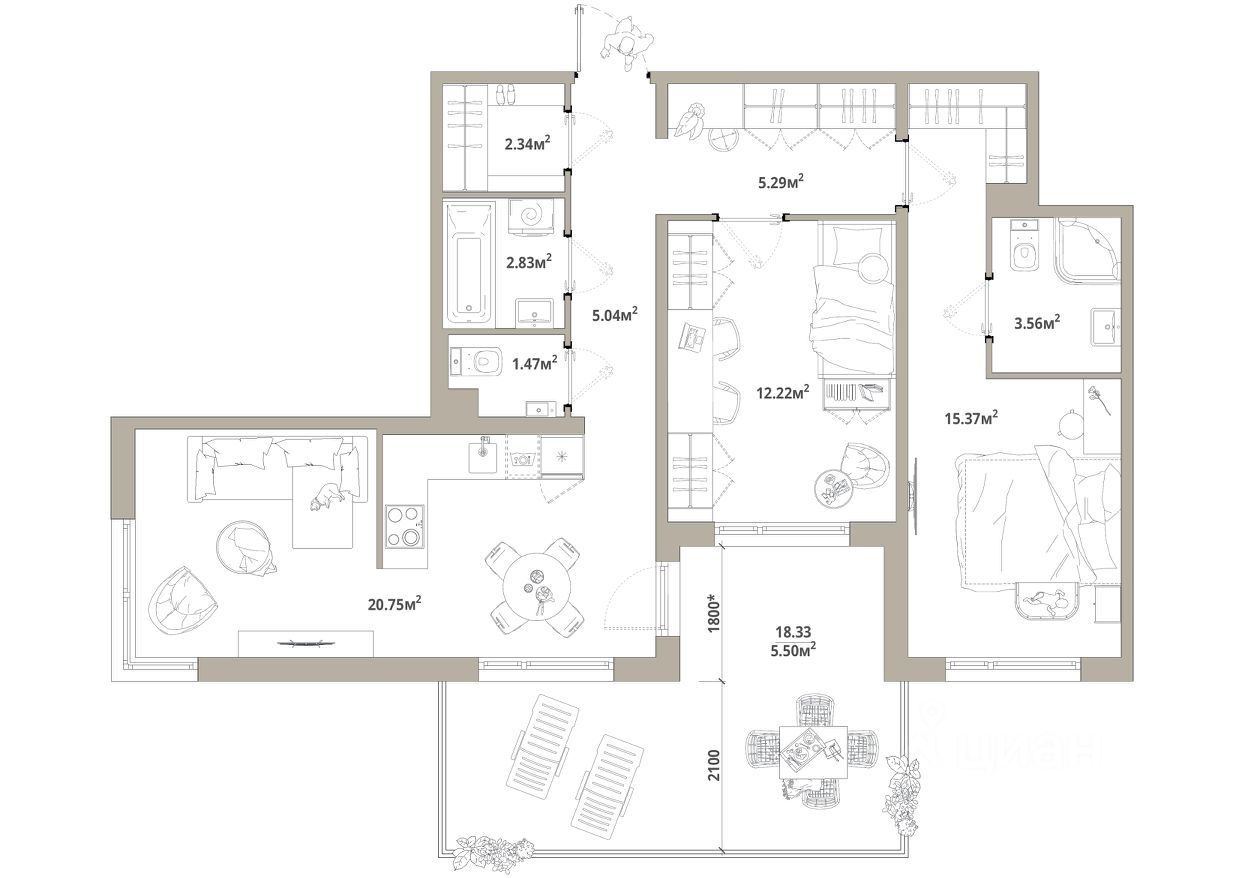 Продаётся 2-комнатная квартира 004, общей площадью 74.37 кв.м., на 1 этаже. Дом комфорт-класса, 12 этажей, в окружении леса и малоэтажной застройки. Проект с умным домом.