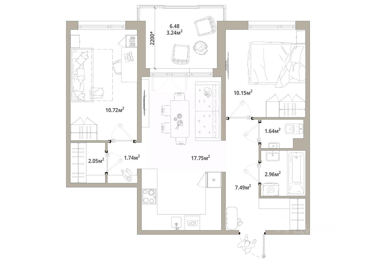 Продаётся 2-комнатная квартира 173, общей площадью 57.74 кв.м., на 12 этаже. Дом комфорт-класса, 12 этажей, в окружении леса и малоэтажной застройки. Проект с умным домом.