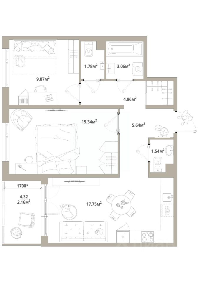 Продаётся 2-комнатная квартира 220, общей площадью 62 кв.м., на 5 этаже. Дом комфорт-класса, 12 этажей, в окружении леса и малоэтажной застройки. Проект с умным домом.